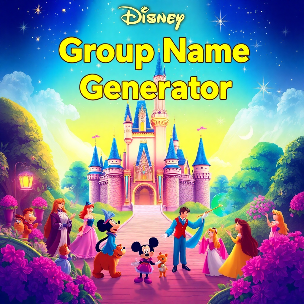 This disney group name generator helps you create fun and creative names for your Disney-themed groups or teams. The disney group name generator provides unique suggestions tailored to your needs.