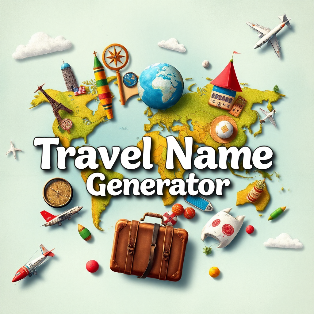 This travel name generator helps you create unique and catchy names for your travel-related projects or brands. Using this travel name generator, you can discover creative travel names effortlessly.